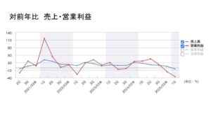 しかし、直近の2四半期を見ると、営業利益が対前年を大きく下回っている状況が確認できます。