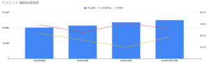 テクセンドもこのサイクルから逃れられず、現在の足元の状況を見ると、2023年頃は市場が厳しかったものの、2024年に回復傾向にあります。しかし、2025年3月期の営業利益予想はすでに減益予想となっており、再びサイクルが下降局面に入る可能性が想定されます。