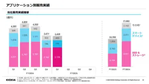 前年同時期は、新型iPhoneが好調に売れるという期待が市場で膨らんでおり、iPhoneなどを製造する顧客企業は、キオクシアが提供するメモリの在庫を大きく積み増ししていました。しかし、実際には期待通りにはいかず、顧客企業側でメモリの在庫のダブつきが発生した模様です。