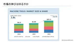工作機械の世界市場全体は、今後年平均4%弱程度の緩やかな成長が見込まれています。