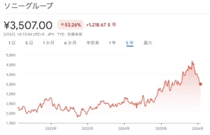 現在、日本を代表する企業であるソニーグループの株価が大きく下落しています。