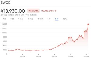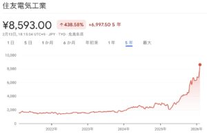住友電気工業も同様に、2024年以降株価が急上昇しています。